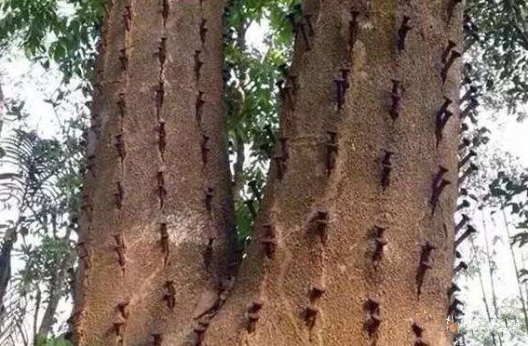 用砍傷法讓沉香樹快速結(jié)香的方法,是最常用的一種人工造香方法。砍傷法需要選擇6-8年以上胸徑10厘米以上的沉香樹,然后,在距離地面1.5米的地方,順砍數(shù)刀,刀與刀之間的距離約30-40厘米左右,傷口深約3-4厘米左右。
